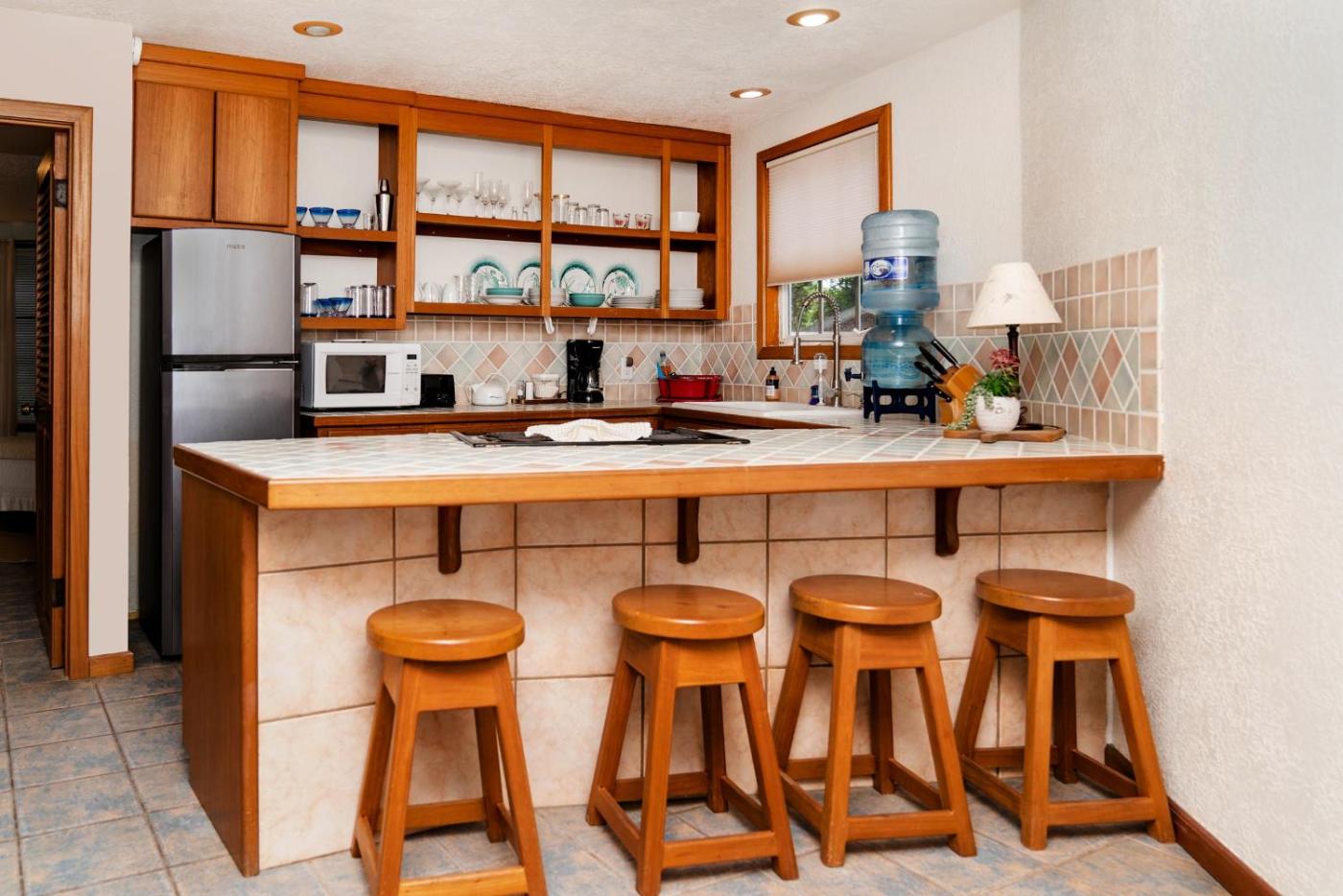 Two-Bedroom Townhouse. The pool with a view is the standout feature of this holiday home. Boasting a private entrance, this air-conditioned holiday home features 2 bedrooms, 2 bathrooms and a living room. Meals can be prepared in the well-fitted kitchen, which has a refrigerator, kitchenware and a microwave. This holiday home has a tea and coffee maker, a safe deposit box, a TV with cable channels and pool views. The unit has 3 beds.